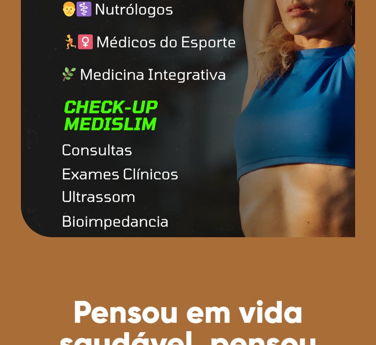 👉 Consultas médicas por convênio e particular, com acompanhamento contínuo e planos personalizados para emagrecimento, performance física e longevidade.